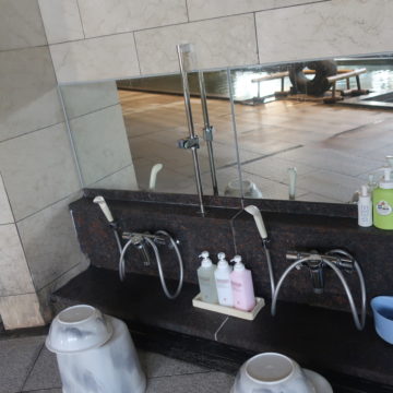 某ホテル大浴場にシャワースライドバーを試験的に設置させていただきました。シャワーの上下作動ができやすくなりました。